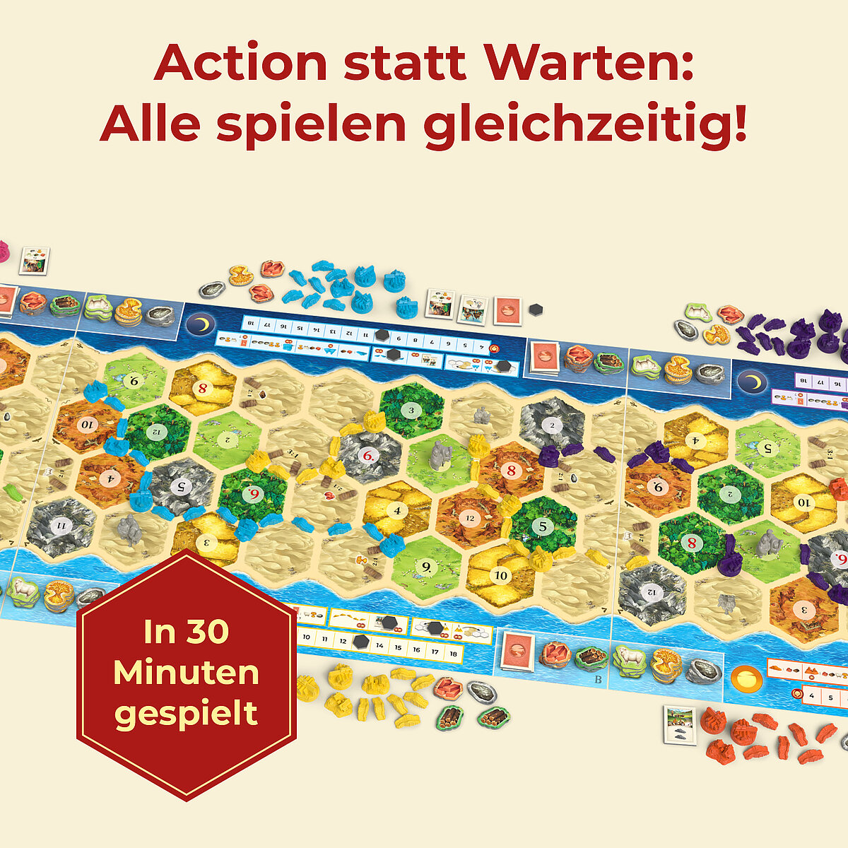 Erlebe CATAN mal anders: Bei CATAN Connect spielen 78 Teilnehmende gleichzeitig in einer großen Inselwelt. Ein gemeinsamer Würfel für alle, feste Rundenzeiten und simultane Bau‑ und Handelsphasen sorgen für Tempo und Teamspirit. Einsteiger willkommen!